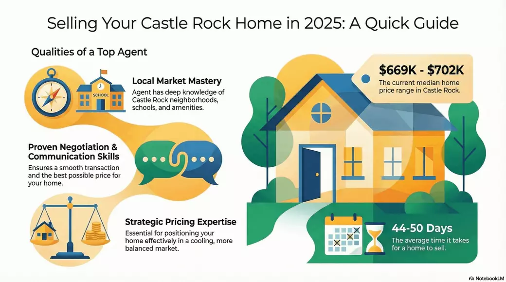 With Castle Rock's market shifting towards a balanced state, having a knowledgeable agent is vital. Home prices have softened, with a median sale price of $630,000, down 4-6% from last year. Homes now take longer to sell, averaging 50-53 days on the market.